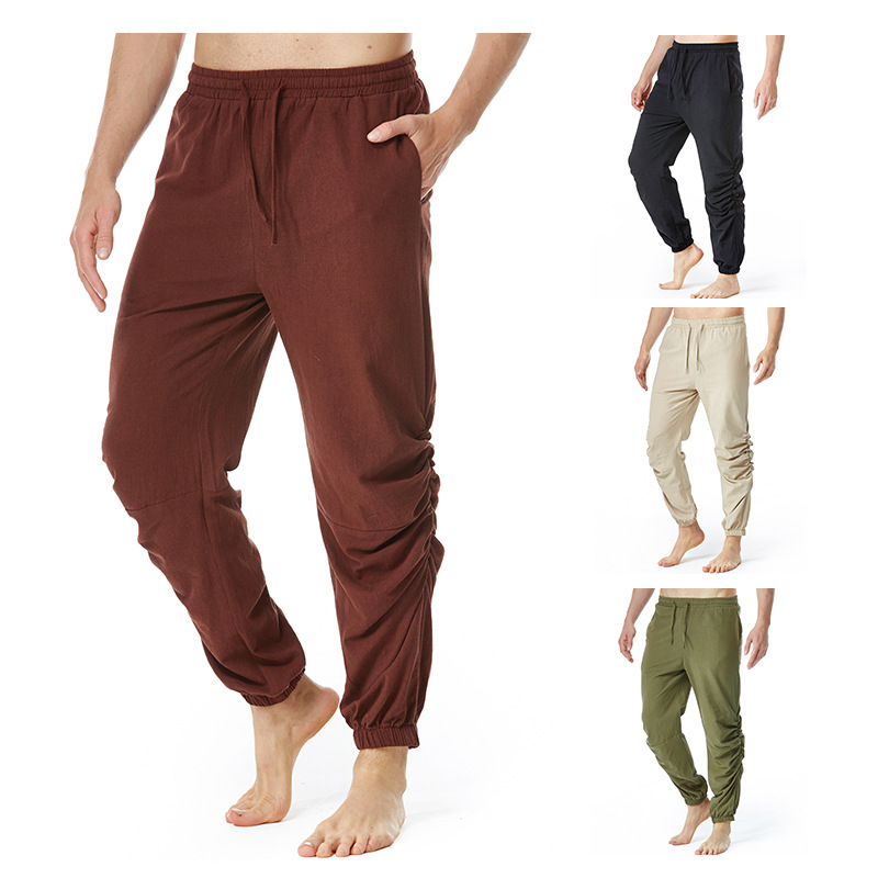 Men's Cotton And Linen Drawstring Elastic Waist Yoga Pants