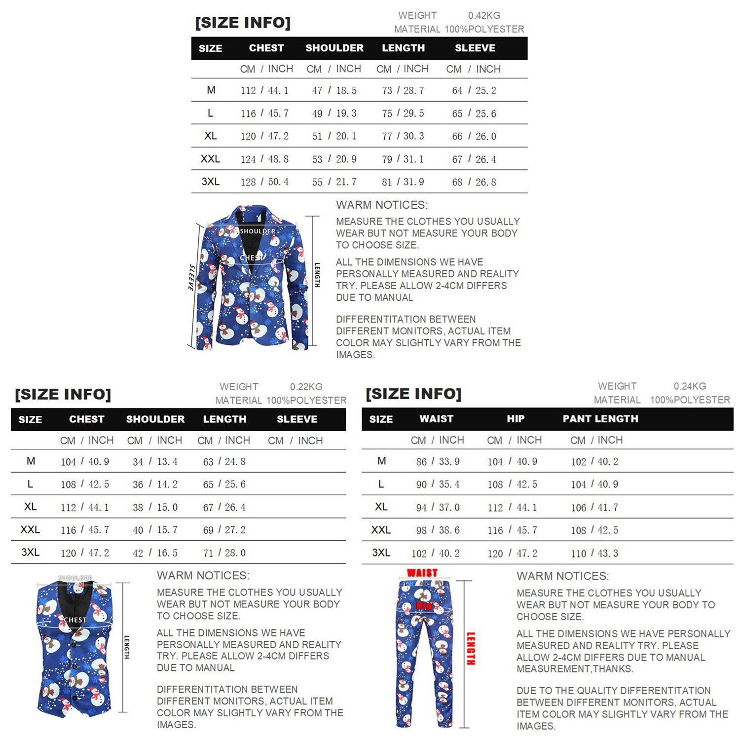 Jacket*1 Vest*1 Pants*1